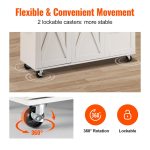 VEVOR Kitchen Island Cart with Solid Wood Top, 45.3″ Width Mobile Carts with Storage Cabinet, Rolling Kitchen Table with Spice Rack, Towel Rack, Drop Leaf and Drawer, Portable Islands on Wheels, White